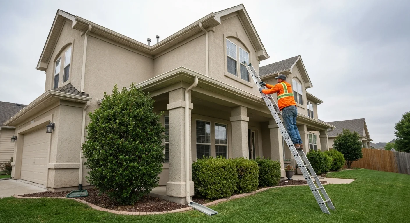 - ●Fascia inspection included. We check the boards behind the gutters — if they’re rotting, we’ll let you know before rehanging gutters on bad wood.